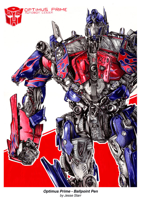 Awesome Optimus Prime drawn entirely with Bic pen.