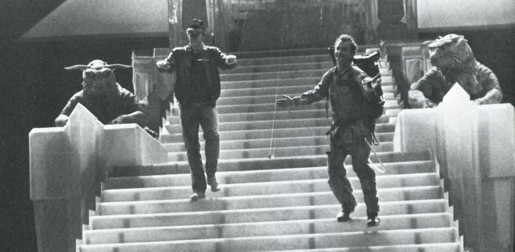Bill Murray and Chevy Chase dancing on the set of Ghostbusters