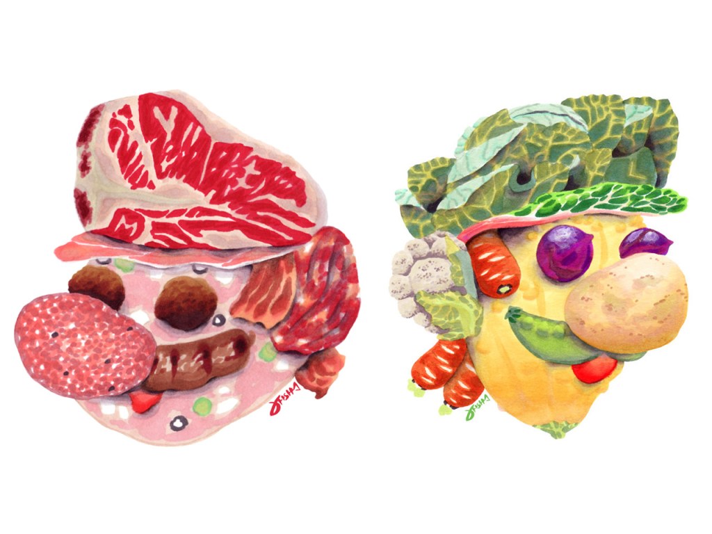 Mario Meat & Luigi Vegetables by Jason Fischer (Tumblr) (Twitter)