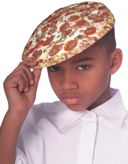 First there was the pizza shirt. I give you: THE PIZZA HAT!