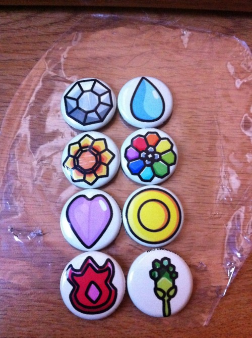 My Pokemon badges, courtesy of fypblog.com and nopeclothing.com