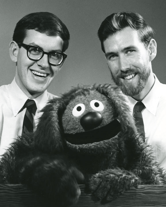 Frank Oz and Jim Henson with Rowlf The Dog.