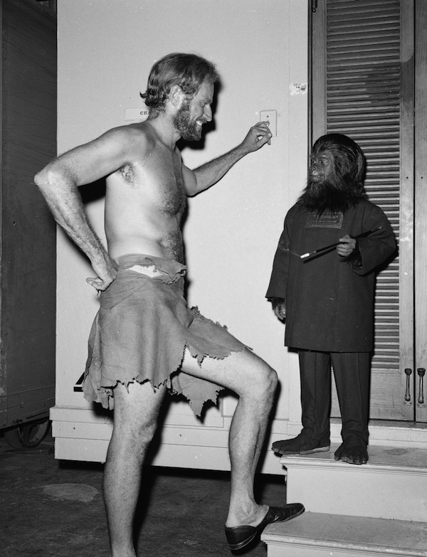 Charlton Heston chatting with a monkey on the set of Planet of the Apes!