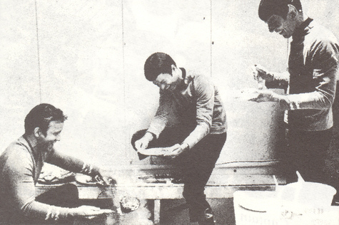 Kirk, Bones, and Spock eating BBQ.