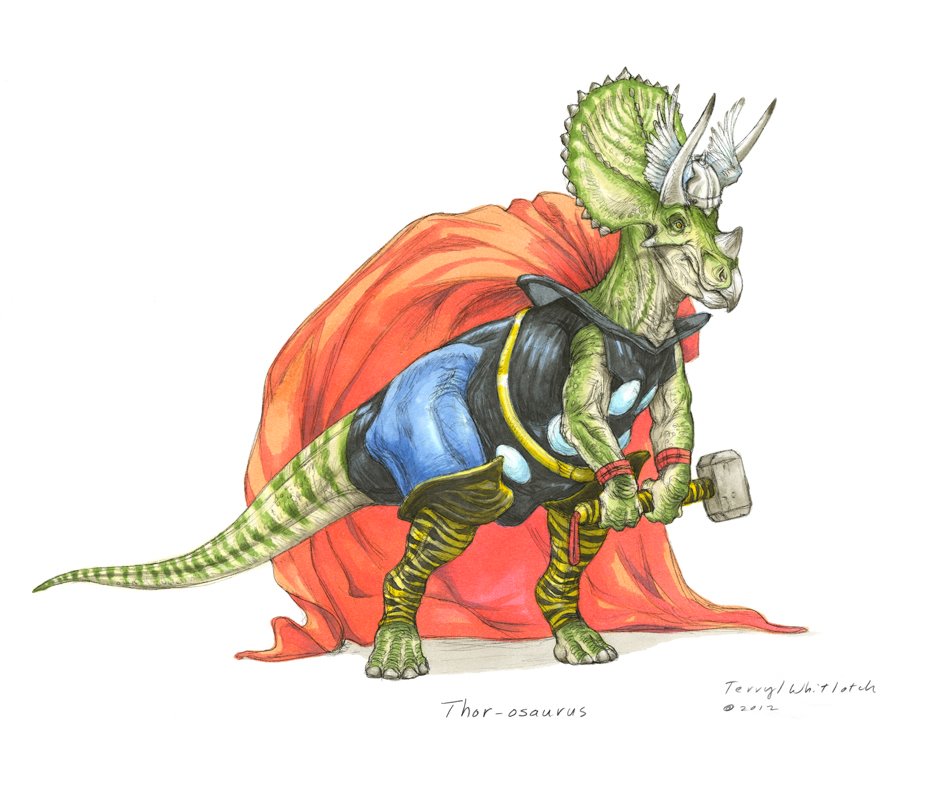 A creature designer who worked on Star Wars: Episode I and illustrated The Katurran Odyssey, Terryl Whitlatch was also once a student of zoology, a knowledge base that she recently put to valuable use by drawing some unusually realistic-looking pictures of the Avengers dressed as dinosaurs.