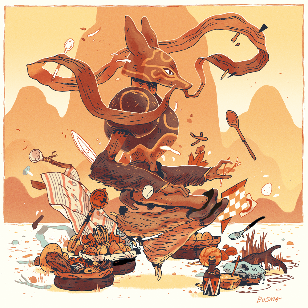 This is my finished piece for the Pokemon Battle Royale show held next month at the Light Gray Art Gallery in St. Paul, Minnesota. Alakazam is some kind of psychic jackal, I think? This show is going to be amazing. There will be a few prints of this dude available there.