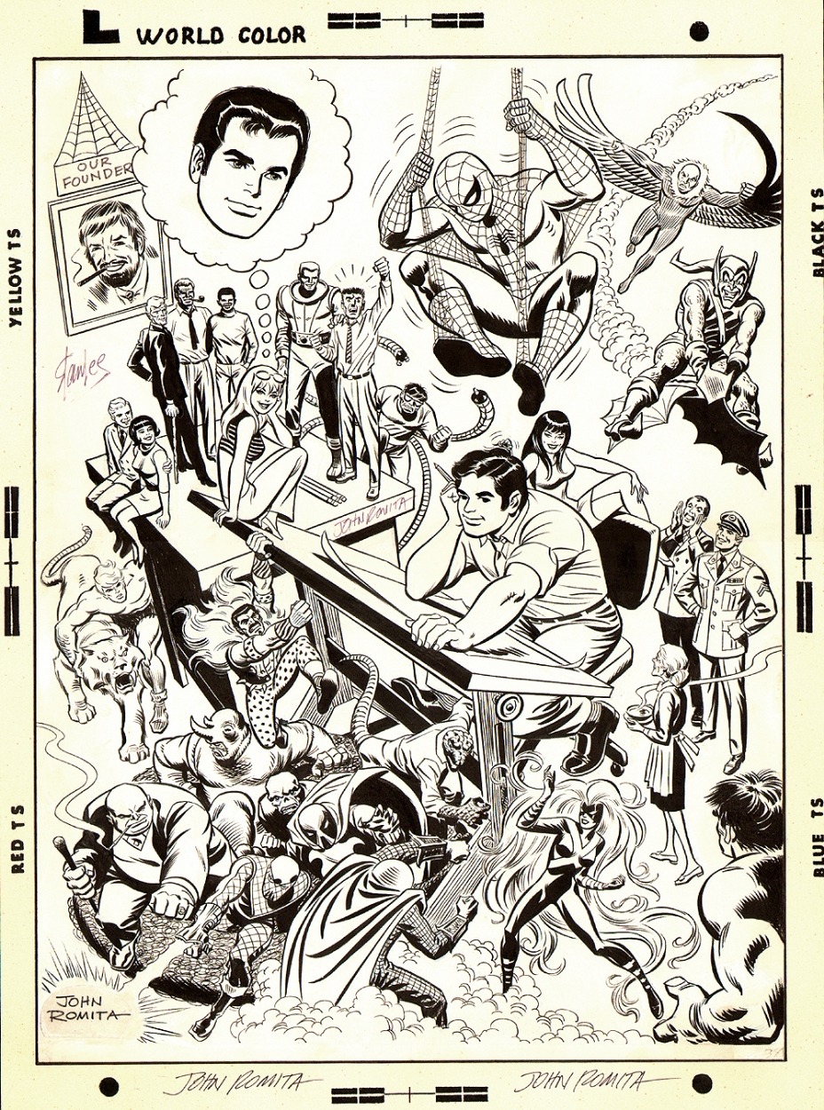 Self-portrait of John Romita produced for the Marvelmania artist portfolios.