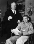 Alfred Hitchcock and James Stewart on the set of Rear Window (1954)